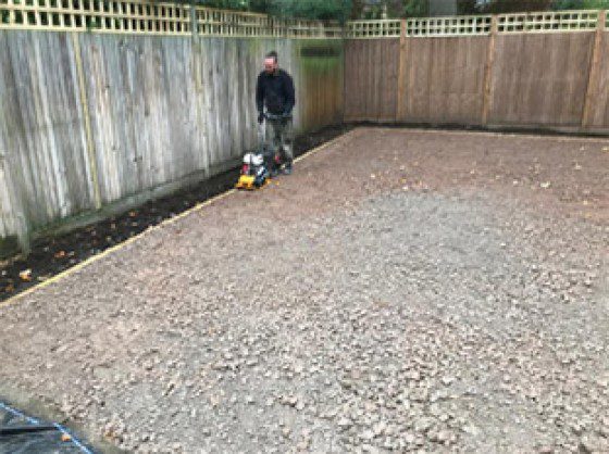 This acts firstly as a weed suppressant but also as a stabiliser for the MOT type one & granite dust base that will follow.