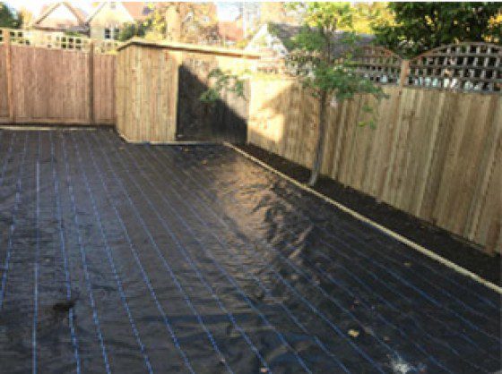 Once the turf has been removed we apply a layer of geotextile membrane on top of the soil base.